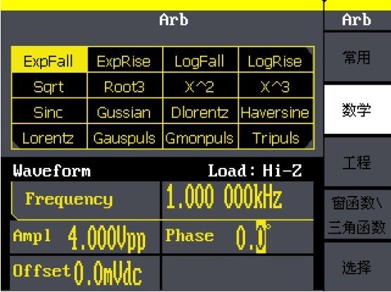如图3 所示,SDG800能够输出5种标准波形和46种常用波形,包括常用的波形、数学函数、工程应用函数、窗函数和三角函数。