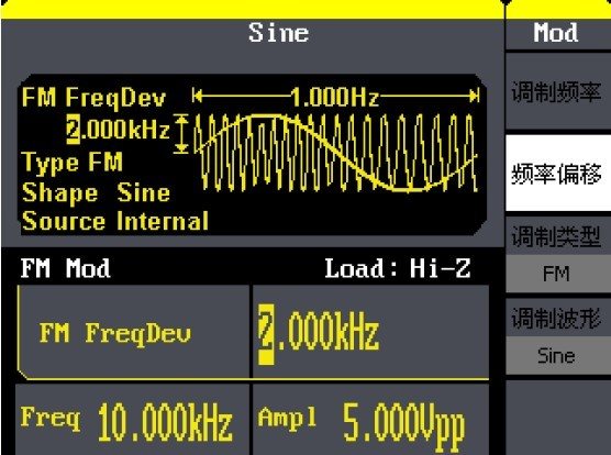 如图4 所示,SDG800具有丰富的调制功能,AM、DSB-AM、FM、PM、FSK、ASK、PWM以及输出线性/对数扫描和脉冲串波形。